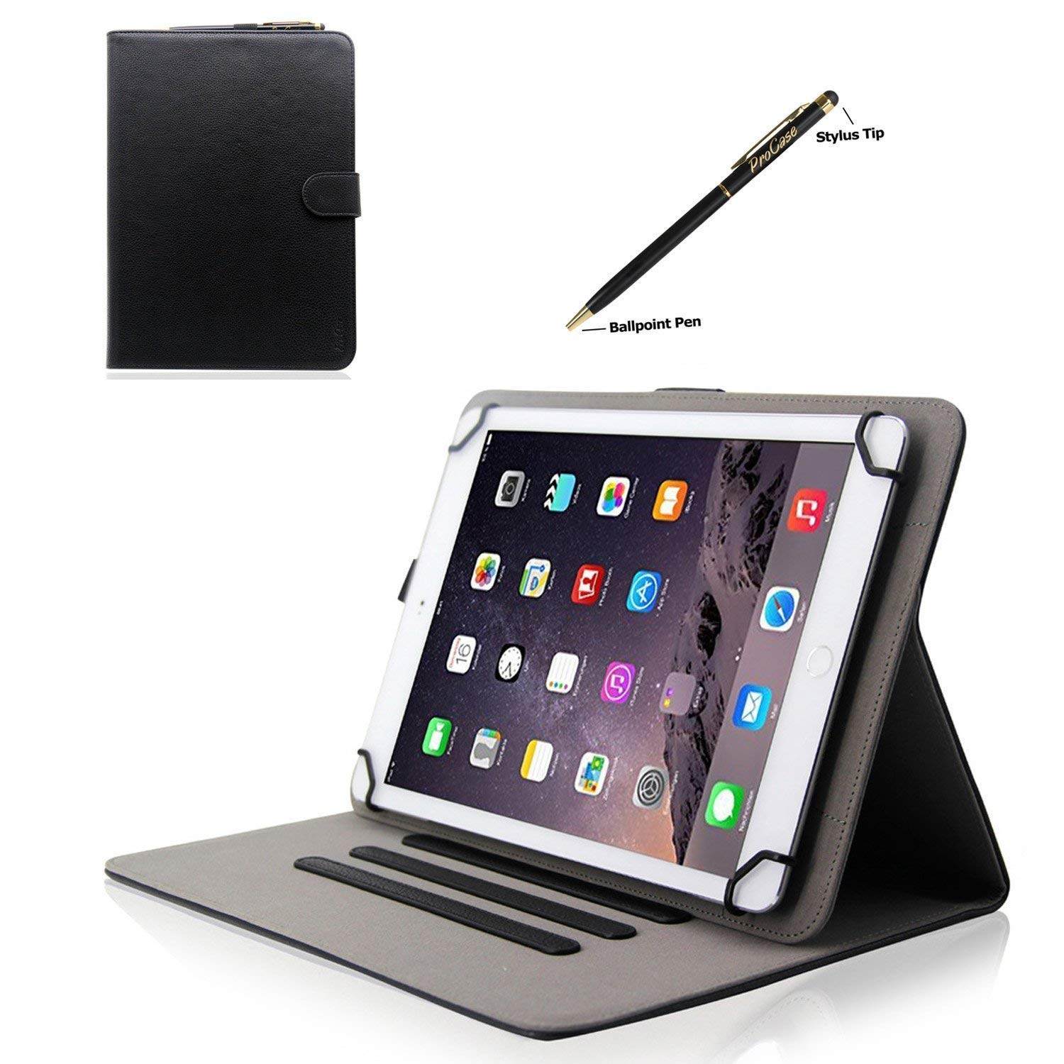FEPITO Universal Folio Case for 9-10 inch Tablet, Leather Stand Protective Case Cover for 9" 10.1" Touchscreen Tablet with Multi-Angle Stand, Bonus procase Stylus Pen (Black)